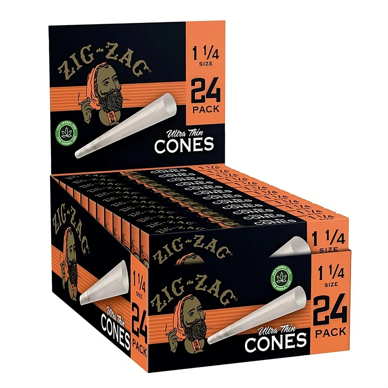CONES ZIG ZAG ORANGE 1 1/4 24PK provides a bulk supply of premium pre-rolled cones designed for a smooth, even burn. Each pack includes 24 cones in the popular 1 1/4 size, offering convenience and consistency for frequent users. The bright orange paper enhances visibility and style, while the high-quality material ensures durability and reliable performance. Ideal for professionals and enthusiasts seeking efficiency and precision in their rolling experience.