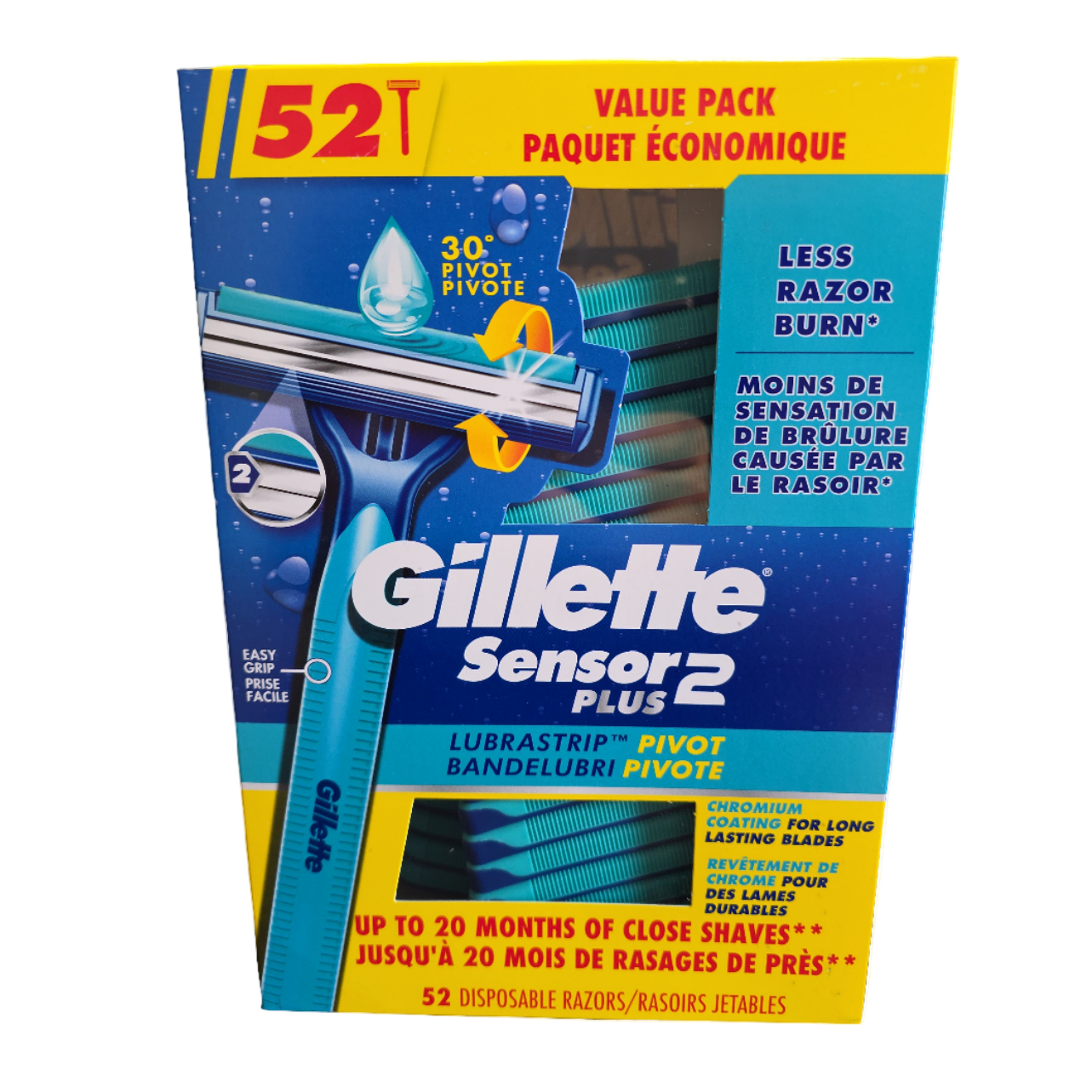 This Gillette razor pack includes 52 high-quality blades in a single convenient container, designed for consistent, smooth shaving. Each razor offers precision engineering to provide a close, comfortable shave while minimizing irritation. Ideal for those seeking reliable performance in bulk, this pack ensures you stay well-stocked with durable blades, supporting efficient grooming routines.