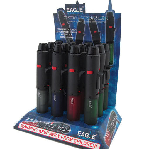 The Light Eagle Torch Pen 12CT offers a sleek, pen-style design with a powerful torch flame for precise and reliable ignition. This 12-count pack ensures consistent performance and durability, making it ideal for professional use and detailed lighting tasks. Its slim profile enhances portability and ease of handling.