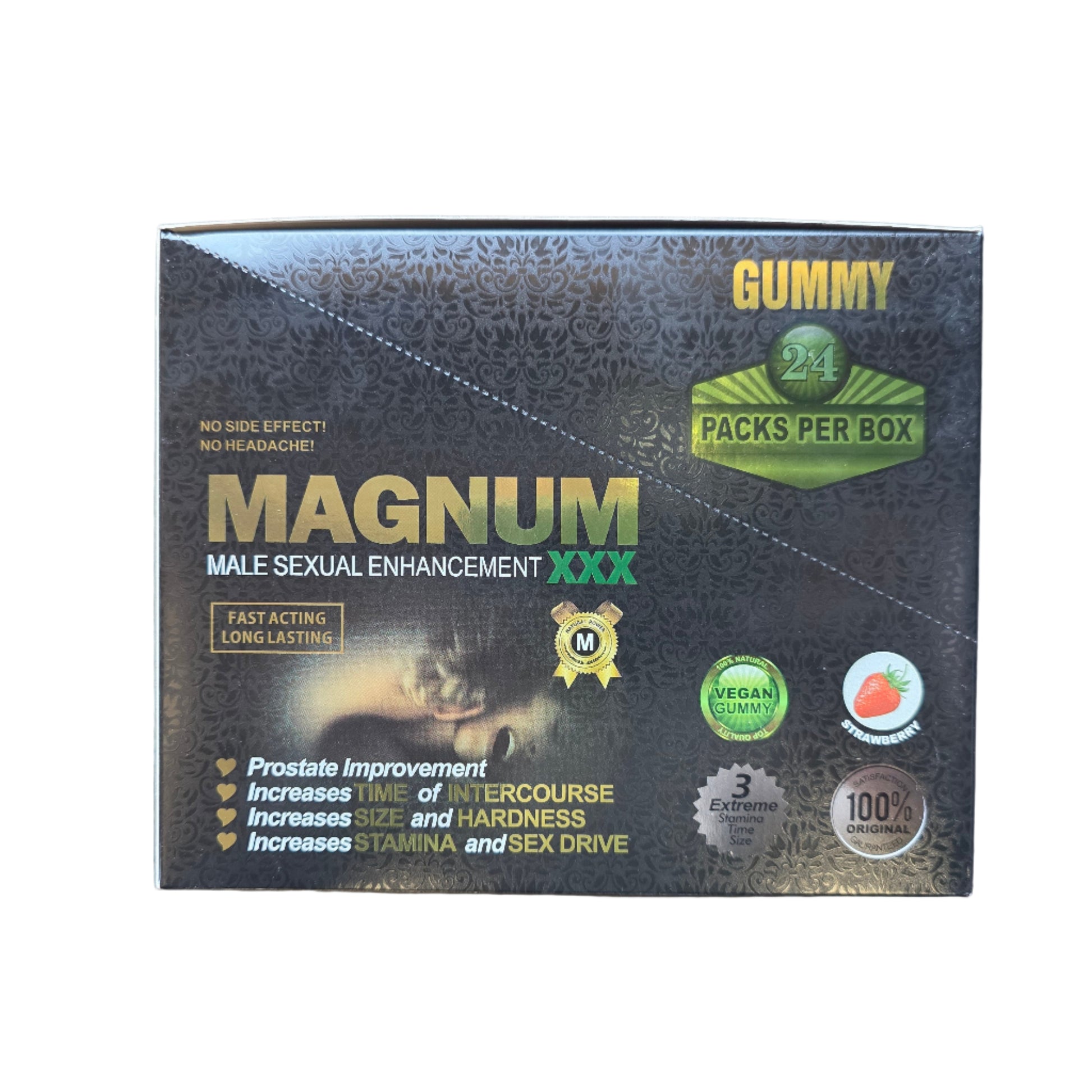 MAGNUM BLACK GUMMY MALE ENHANCEMENT XXX offers a potent formula designed to support male vitality and performance. Each gummy provides a convenient, discreet way to enhance stamina and confidence. Ideal for those seeking effective, fast-acting male enhancement in a tasty, easy-to-take format. Sold in a 24-pack for consistent supply and value.