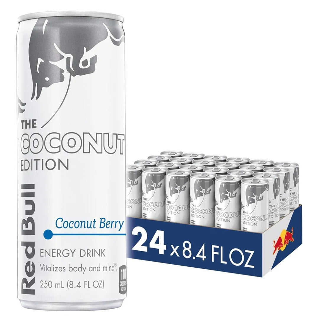 Red Bull Energy Coconut Berry White 8.4oz 24-pack combines Red Bull’s proven energy formula with a refreshing blend of coconut and berry flavors. Each can delivers caffeine, taurine, and essential B vitamins to support enhanced focus, alertness, and endurance, providing a distinctive and invigorating energy boost for active lifestyles.