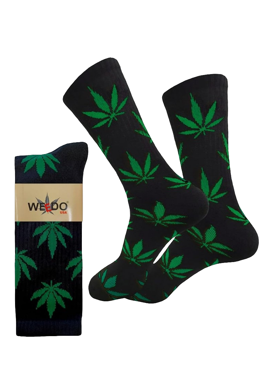 SOCKS WEEDO LONG BLK/GREEN 12PK